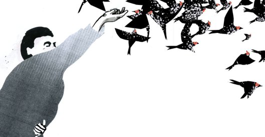 Frammenti estratti da: Carmine Mangone, Mai troppo tardi per le fragole, edizioni l’Orecchio di Van Gogh, 2009 (ma scritti originariamente nel 2004-2005). Illustrazione: Clemens Habicht, Black birds, 2005.
