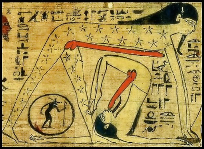 Anteriore di 2-3 secoli è il Papiro di Ani, redatto dallo scriba omonimo durante la XVIII dinastia. Si tratta di una versione del Libro dei Morti egizio, che al capitolo XXI presenta una raffigurazione in cui si vede Iside inginocchiata davanti a un uomo mummificato e ritto in piedi. Secondo alcune interpretazioni, la dea sta praticando una fellatio per riportare in vita il morto.
