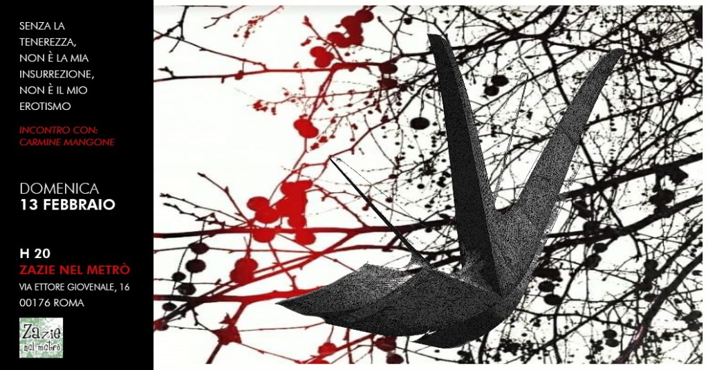 Parafrasando Emma Goldman: senza la tenerezza, non è la mia insurrezione, non è il mio erotismo. Abbiamo bisogno di nuovi miti, di nuove rilegature, ma senza più dèi, senza più padroni, finalmente all’altezza di ogni nostra più appassionante concezione poetica.