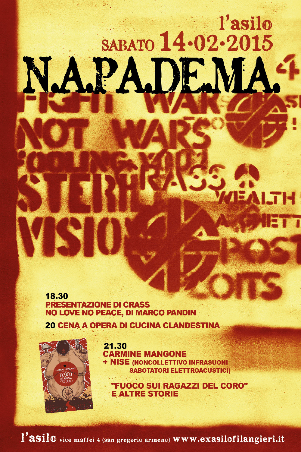Sabato 14 febbraio 2015, h 21:30 :: ex Asilo Filangieri, NAPOLI :: N.A.PA.DE.MA #4 :: Reading/performance con alcuni “musicanti” del N.I.S.E. per presentare Fuoco sui ragazzi del coro.