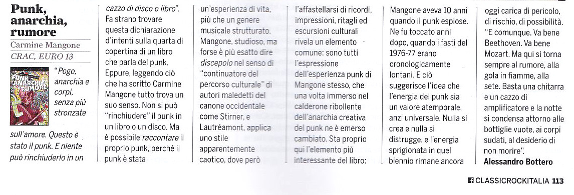 - Recensione di Punk Anarchia Rumore su Classic Rock Italia n. 47, ottobre 2016 (Alessandro Bottero)